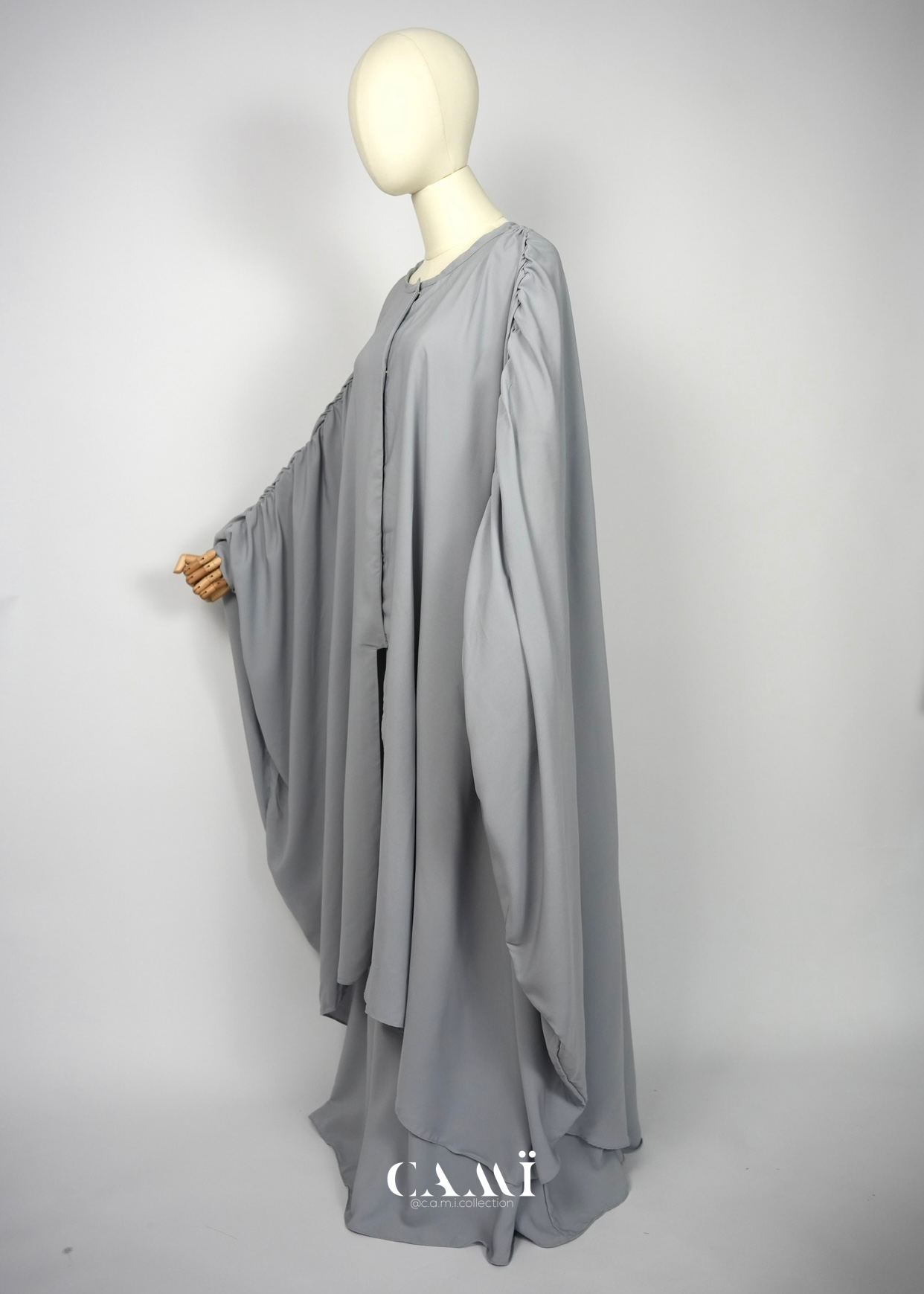 Das Abaya Set besteht aus einem Abaya Cape mit wunderschönen detaillierten Ärmeln und einem Rock. Mit dem Rock, welcher integrierte Bänder am elastischen Bund hat, lässt sich das Abaya Set individuell an deine Größe anpassen.
